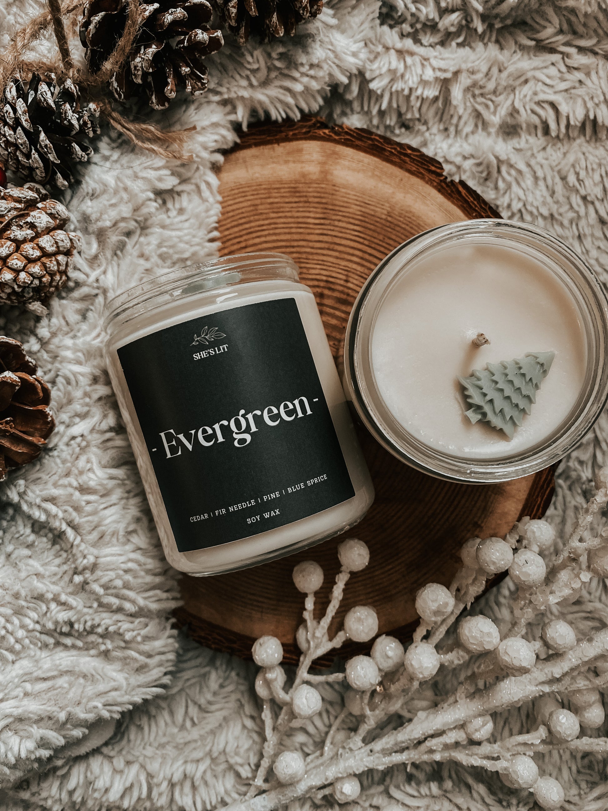 Evergreen- Step into the hush of a winter forest as the air crisp with pine, cedar, and fresh fir. Evergreen wraps you in the scent of snow-dusted branches and distant woodsmoke, grounded with earthy moss and a whisper of amber warmth. It’s the feeling of pulling on a soft sweater, lighting the fire, and watching the world go still outside your window.